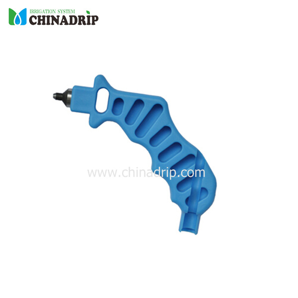 Untuk menggunakan pelubang pegangan, pertama-tama masukkan pipa poli ke dalam pelubang. Kemudian tekan pegangan ke bawah untuk membuat lubang.